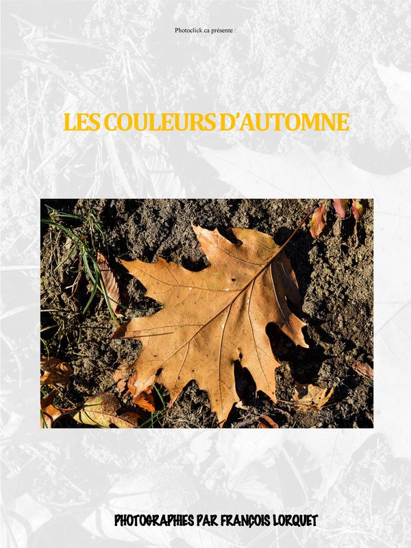 Les couleurs d'automne sont selon mon opinion, les plus belles de l'année. C'est la période ou la nature nous révèle toute sa splendeur. En voici la preuve. Disponible sur Livre Apple sans frais pour Novembre et sur Amazon sans frais si vous êtes abonnés à Kindle Unlimited ou 9,99$. Tapez Photoclick.ca pour les trouver