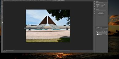 Avoir une photo ou tout est parfaitement centré n'est pas toujours possible. Donc sélectionner la pyramide au milieu avec l'outil sélection carré et déplacez l'objet au centre. Il y aura une section vide. C'est normal.